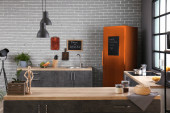 Zdjęcie "Pusty drewniany blat w nowoczesnej kuchni" może być wykorzystywane do celów osobistych i komercyjnych zgodnie z warunkami zakupionej licencji Royalty-free. Obraz jest dostępny do pobrania w jakości wysokiej rozdzielczości do 5760x3840.