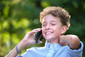 Zdjęcie "Szczęśliwy młodzieniec rozmawiający przez telefon komórkowy na świeżym powietrzu w letnim parku. Koncepcja przyjaźni online" może być wykorzystywane do celów osobistych i komercyjnych zgodnie z warunkami zakupionej licencji Royalty-free. Obraz jest dostępny do pobrania w jakości wysokiej rozdzielczości do 5760x3840.