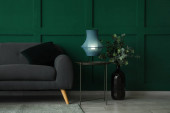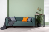 Zdjęcie "Wnętrze salonu ze stylową lampą i wygodną sofą" może być wykorzystywane do celów osobistych i komercyjnych zgodnie z warunkami zakupionej licencji Royalty-free. Obraz jest dostępny do pobrania w jakości wysokiej rozdzielczości do 5760x3840.