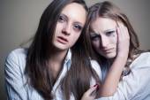 płacz młoda dziewczyna na białym tle