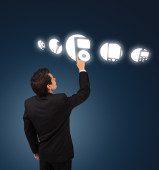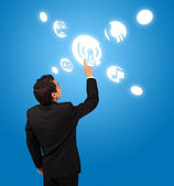 człowiek biznesu, naciskając przycisk dotykowy