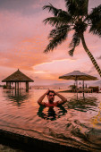 Zdjęcie "Zachód słońca na Cosy Beach Pattaya Tajlandia, para mężczyzn i kobiet oglądających zachód słońca przy basenie w Pattaya Tajlandia" może być wykorzystywane do celów osobistych i komercyjnych zgodnie z warunkami zakupionej licencji Royalty-free. Obraz jest dostępny do pobrania w jakości wysokiej rozdzielczości do 5760x3840.