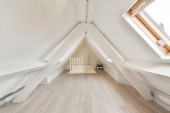 Projekt pokoju z drewnianymi brązowymi schodami