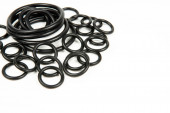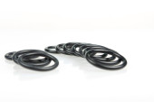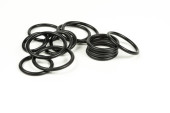 Oringi hydrauliczne i pneumatyczne w kolorze czarnym w różnych rozmiarach na białym tle. Różne uszczelnienia do kanalizacji. Pierścienie uszczelniające do połączeń hydraulicznych.