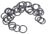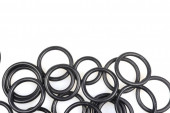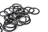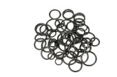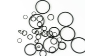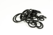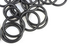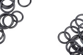 Oringi hydrauliczne i pneumatyczne w kolorze czarnym w różnych rozmiarach na białym tle. Różne uszczelnienia do kanalizacji. Pierścienie uszczelniające do połączeń hydraulicznych.