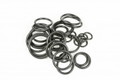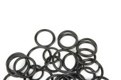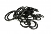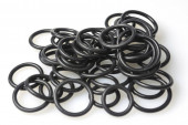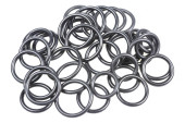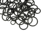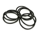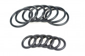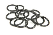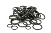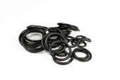 Oringi hydrauliczne i pneumatyczne w kolorze czarnym w różnych rozmiarach na białym tle. Różne uszczelnienia do kanalizacji. Pierścienie uszczelniające do połączeń hydraulicznych.