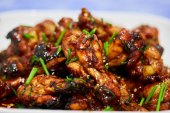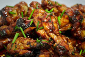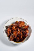 Karmelizowane azjatyckie gorące skrzydełka kurczaka w zbliżeniu