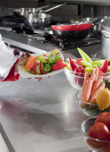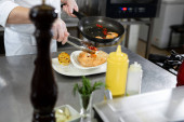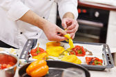 Profesjonalny szef kuchni piecze warzywa na grillu.