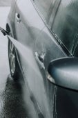 Myjnia samochodowa z wodą pod ciśnieniem w myjni samochodowej na zewnątrz.