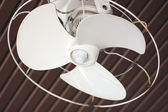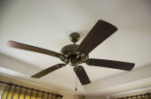 Elektryczne wentylatory sufitowe w niekompletnym stanie wewnątrz budynku. Skupienie selektywne.