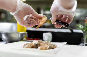 Zdjęcie "Szef kuchni tnie ostrą paprykę chili w kuchni." może być wykorzystywane do celów osobistych i komercyjnych zgodnie z warunkami zakupionej licencji Royalty-free. Obraz jest dostępny do pobrania w jakości wysokiej rozdzielczości do 5760x3840.