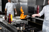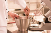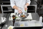 Zdjęcie "Profesjonalny kucharz w białych solach mundurowych krewetek królewskich. Szlifierka do soli drewnianej." może być wykorzystywane do celów osobistych i komercyjnych zgodnie z warunkami zakupionej licencji Royalty-free. Obraz jest dostępny do pobrania w jakości wysokiej rozdzielczości do 5760x3840.