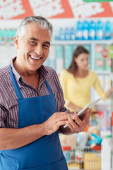Zdjęcie "Pewny siebie sprzedawca ze spożywczaka pozujący z skrzyżowanymi rękami i uśmiechniętą, pustą przestrzenią do kopiowania" może być wykorzystywane do celów osobistych i komercyjnych zgodnie z warunkami zakupionej licencji Royalty-free. Obraz jest dostępny do pobrania w jakości wysokiej rozdzielczości do 5760x3840.