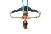 Antygrawitacyjna joga, kobiety ćwiczące jogę w parku.