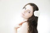 profesjonalny makijaż i fryzurę piękna młoda kobieta z bliska
