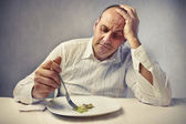 Jeden człowiek odchudza się i nie lubi warzyw i sałatek.