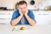 Jeden człowiek odchudza się i nie lubi warzyw i sałatek.