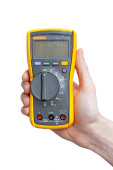 Nowoczesny przenośny przenośny multimetr cyfrowy z wyświetlaczem LCD na białym tle
