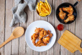 Zdjęcie "Grillowane dania z kurczaka i sos do zanurzania z piekarnika na czarnym tle" może być wykorzystywane do celów osobistych i komercyjnych zgodnie z warunkami zakupionej licencji Royalty-free. Obraz jest dostępny do pobrania w jakości wysokiej rozdzielczości do 5760x3840.