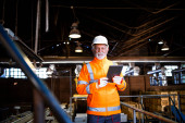 Zdjęcie "Pracownik zakładu w mundurze bezpieczeństwa z sterowaniem radiowym przemysłowego ramienia robota w dziale produkcji." może być wykorzystywane do celów osobistych i komercyjnych zgodnie z warunkami zakupionej licencji Royalty-free. Obraz jest dostępny do pobrania w jakości wysokiej rozdzielczości do 5760x3840.