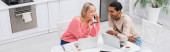 szczęśliwy Afryki para gospodarstwa filiżanki kawy w kuchni, sztandar