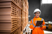 Zdjęcie "Pracownik przemysłowy lub nadzorca kontrolujący proces produkcji za pomocą komputera typu tablet w fabryce." może być wykorzystywane do celów osobistych i komercyjnych zgodnie z warunkami zakupionej licencji Royalty-free. Obraz jest dostępny do pobrania w jakości wysokiej rozdzielczości do 5760x3840.