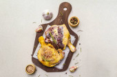 Zdjęcie "Roztopiony ser Rougette ze świeżym rozmarynem i czosnkiem. Ser z miękkiej, dojrzałej czerwonej skórki. Pyszna przekąska z wędzoną papryką. Drewniane tło, przestrzeń do kopiowania" może być wykorzystywane do celów osobistych i komercyjnych zgodnie z warunkami zakupionej licencji Royalty-free. Obraz jest dostępny do pobrania w jakości wysokiej rozdzielczości do 5760x3840.