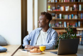 Zdjęcie "wesoły Afroamerykanin człowiek za pomocą laptopa i patrząc na zamazaną dziewczynę trzymając talerz z kanapką " może być wykorzystywane do celów osobistych i komercyjnych zgodnie z warunkami zakupionej licencji Royalty-free. Obraz jest dostępny do pobrania w jakości wysokiej rozdzielczości do 5760x3840.