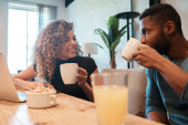 Zdjęcie "kręcone Afryki kobieta trzyma talerz z kanapką w pobliżu zamazany chłopak za pomocą laptopa " może być wykorzystywane do celów osobistych i komercyjnych zgodnie z warunkami zakupionej licencji Royalty-free. Obraz jest dostępny do pobrania w jakości wysokiej rozdzielczości do 5760x3840.