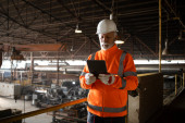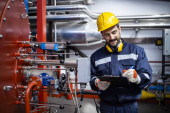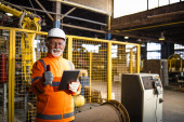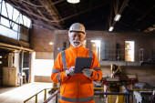 Zdjęcie "Portret eksperta inżyniera przemysłowego w widocznym jednolitym i twardym kapeluszu stojącego w fabryce sprawdzającej przepływ pracy maszyny." może być wykorzystywane do celów osobistych i komercyjnych zgodnie z warunkami zakupionej licencji Royalty-free. Obraz jest dostępny do pobrania w jakości wysokiej rozdzielczości do 5760x3840.