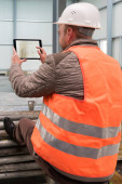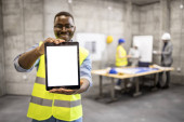 Zdjęcie "Widok górny pracownika fabryki noszącego mundur ochronny i twardy kapelusz, korzystającego z komputera typu tablet sterującego procesem produkcji." może być wykorzystywane do celów osobistych i komercyjnych zgodnie z warunkami zakupionej licencji Royalty-free. Obraz jest dostępny do pobrania w jakości wysokiej rozdzielczości do 5760x3840.