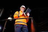 Zdjęcie "Pracownik fabryczny lub nadzorca przemysłowy w mundurze ochronnym i twardym kapeluszu stojący w fabrycznej hali produkcyjnej i korzystający z tabletu." może być wykorzystywane do celów osobistych i komercyjnych zgodnie z warunkami zakupionej licencji Royalty-free. Obraz jest dostępny do pobrania w jakości wysokiej rozdzielczości do 5760x3840.