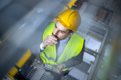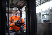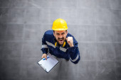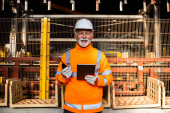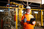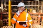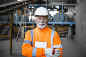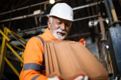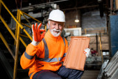 Zdjęcie "Pracownik produkcji fabrycznej w sprzęcie zabezpieczającym trzymający dachówkę i sprawdzający jakość produktu dla budownictwa." może być wykorzystywane do celów osobistych i komercyjnych zgodnie z warunkami zakupionej licencji Royalty-free. Obraz jest dostępny do pobrania w jakości wysokiej rozdzielczości do 5760x3840.