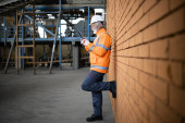 Zdjęcie "Portret pracownika fabryki w wyposażeniu bezpieczeństwa stojącego przy murze w fabryce." może być wykorzystywane do celów osobistych i komercyjnych zgodnie z warunkami zakupionej licencji Royalty-free. Obraz jest dostępny do pobrania w jakości wysokiej rozdzielczości do 5760x3840.