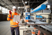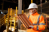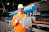 Zdjęcie "Udana produkcja płytek ceramicznych i pracownik fabryki sprawdzanie jakości koloru i tekstury." może być wykorzystywane do celów osobistych i komercyjnych zgodnie z warunkami zakupionej licencji Royalty-free. Obraz jest dostępny do pobrania w jakości wysokiej rozdzielczości do 5760x3840.