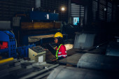 Zdjęcie "Doświadczony inżynier przemysłowy lub starszy pracownik fabryki obsługujący automat w hali produkcyjnej. Wnętrze fabryki w tle." może być wykorzystywane do celów osobistych i komercyjnych zgodnie z warunkami zakupionej licencji Royalty-free. Obraz jest dostępny do pobrania w jakości wysokiej rozdzielczości do 5760x3840.