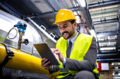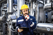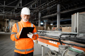 Zdjęcie "Nadzorca ds. pracowników przemysłowych stojący przy maszynie i sprawdzający produkcję w fabryce." może być wykorzystywane do celów osobistych i komercyjnych zgodnie z warunkami zakupionej licencji Royalty-free. Obraz jest dostępny do pobrania w jakości wysokiej rozdzielczości do 5760x3840.