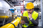 Zdjęcie "Nadzorca ds. pracowników przemysłowych stojący przy maszynie i sprawdzający produkcję w fabryce." może być wykorzystywane do celów osobistych i komercyjnych zgodnie z warunkami zakupionej licencji Royalty-free. Obraz jest dostępny do pobrania w jakości wysokiej rozdzielczości do 5760x3840.