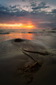Piękny wschód słońca na plaży Morza Bałtyckiego w Gdyni Orłowo. Polska