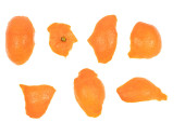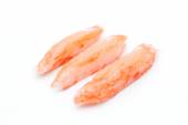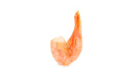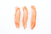 Nieobrane mrożone krewetki na białym tle. zbliżenie