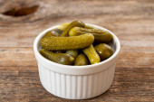 Zdjęcie "Marynowane ogórki na zardzewiałym tle żelaza. Zbliżenie ogórków marynowanych w płycie ceramicznej. zbliżenie" może być wykorzystywane do celów osobistych i komercyjnych zgodnie z warunkami zakupionej licencji Royalty-free. Obraz jest dostępny do pobrania w jakości wysokiej rozdzielczości do 5760x3840.