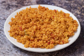Zdjęcie "Pilaf bulgur na ciemnym tle. Zbliżenie tureckiej żywności Bulgur Pilav w płycie ceramicznej" może być wykorzystywane do celów osobistych i komercyjnych zgodnie z warunkami zakupionej licencji Royalty-free. Obraz jest dostępny do pobrania w jakości wysokiej rozdzielczości do 5760x3840.
