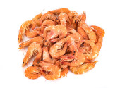 Nieobrane świeże krewetki izolowane na białym tle. zbliżenie