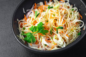 sałatka kapusta, marchew, cebula świeża porcja dieta zdrowy posiłek dieta martwa natura przekąska na stole kopia przestrzeń jedzenie tło rustykalny widok keto lub paleo dieta wegetariańska wegańskie lub wegetariańskie