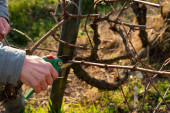 Zdjęcie "Zbliżenie ręki plantatora winorośli. Przytnij winnicę profesjonalnymi nożyczkami ze stali. Tradycyjne rolnictwo. Przycinanie zimą, metoda Guyota." może być wykorzystywane do celów osobistych i komercyjnych zgodnie z warunkami zakupionej licencji Royalty-free. Obraz jest dostępny do pobrania w jakości wysokiej rozdzielczości do 5760x3840.
