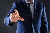 Zdjęcie "biznesmen klika na wirtualny ekran " może być wykorzystywane do celów osobistych i komercyjnych zgodnie z warunkami zakupionej licencji Royalty-free. Obraz jest dostępny do pobrania w jakości wysokiej rozdzielczości do 5760x3840.