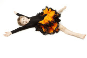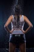 Zdjęcie rozciągania dziewczyna z ramionami skrzyżowanymi