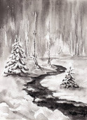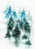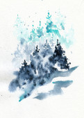 Zdjęcie "Stylizowany krajobraz leśny z księżycem i płatkami śniegu w scenie nocnej. Ręcznie rysowane akwarele na papierowej fakturze. Raster bitmap obrazu" może być wykorzystywane do celów osobistych i komercyjnych zgodnie z warunkami zakupionej licencji Royalty-free. Obraz jest dostępny do pobrania w jakości wysokiej rozdzielczości do 5760x3840.