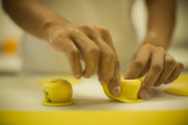 Szczęśliwy i zdrowy posiłek dla młodego człowieka przygotowujący cały wegetariański posiłek w kuchni. Wysokiej jakości zdjęcie. Poczuj się dobrze, zdrowy i koncepcja zdrowia.