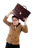 Zdjęcie "Zabawny biznesmen z walizką odizolowaną na biało" może być wykorzystywane do celów osobistych i komercyjnych zgodnie z warunkami zakupionej licencji Royalty-free. Obraz jest dostępny do pobrania w jakości wysokiej rozdzielczości do 5760x3840.